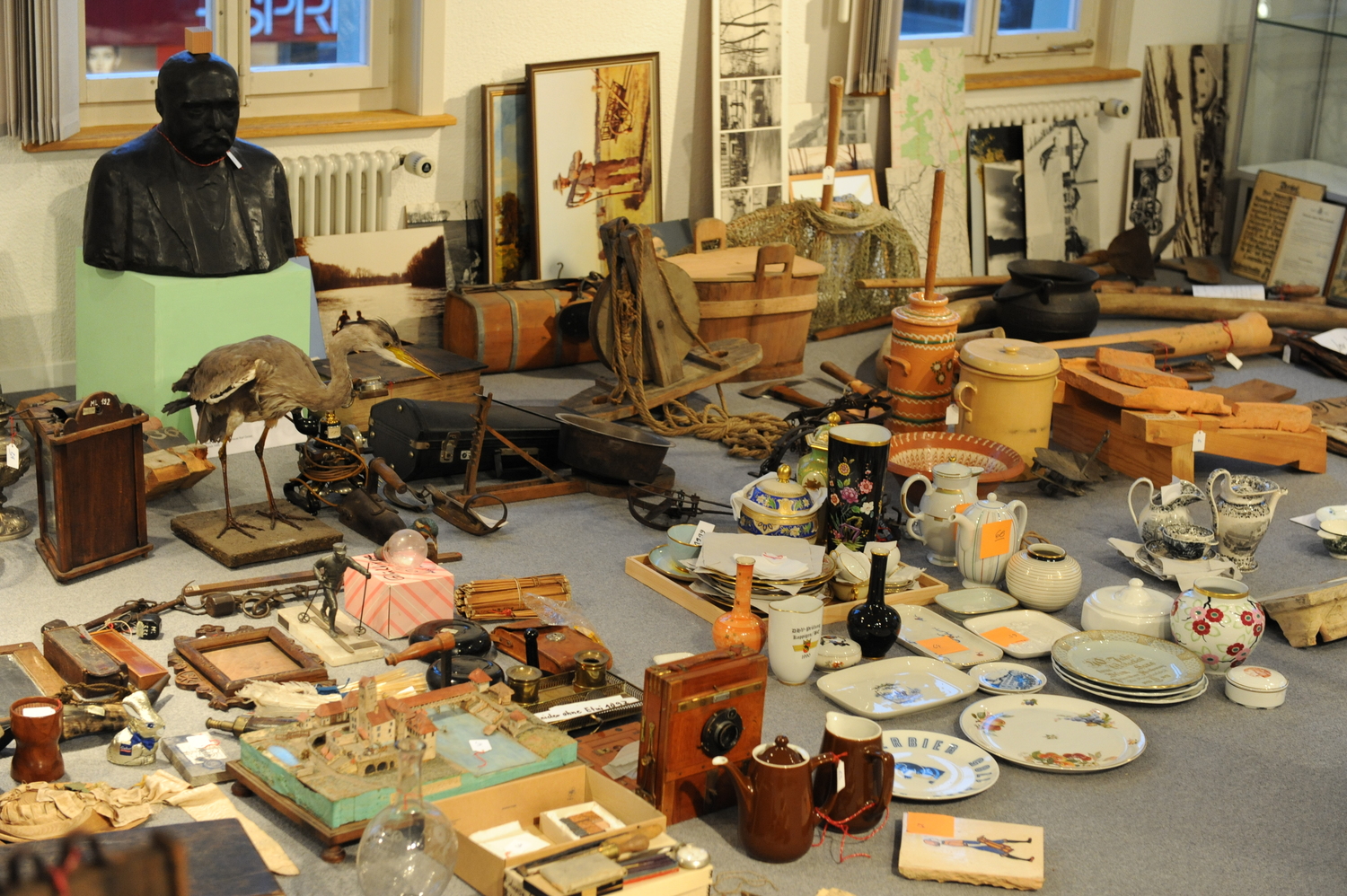 Jedes Objekt erzählt eine GeschichteEs gehört zu den Eigenheiten von Ausstellungen, dass sie Sachverhalte deuten und interpretieren, die nicht anwesend sind, sondern durch Objekte vertreten werden. So zeugen etwa Ammoniten aus den Jurafelsen von ehemaligen Meeren, die das ganze Mittelland bedeckten. Und altes, bunt bemaltes Porzellan von der Blütezeit der Porzellanfabrik Langenthal. Der Besucher trifft hier auf die unterschiedlichsten Objekte, die alle Geschichten erzählen. Bei manchen verweilt er länger, andere vergisst er wieder, oder er stösst beim Herumschlendern plötzlich auf etwas Unerwartetes. Symbole und MetaphernDank des durchdachten Konzepts und der eigenwilligen Gestaltung greifen in dieser Ausstellung gleich mehrere Lektüre-Ebenen ineinander. Die erste Ebene ist die rein ästhetische, also das, was der Betrachter als Erstes sieht. Die zweite Ebene umfasst Sinnbilder, Gegenüberstellungen und Brüche. Darauf basiert auch die Ausstellungsarchitektur aus purpurnen Schubladen: Die Gegenstände befinden sich zwar in Schubladen, die aber alle offen sind. – Die Geschichte wird sozusagen schubladisiert, ist jedoch trotzdem allen zugänglich. Es gibt weitere solche Symbole: zum Beispiel das grosse, alte Zifferblatt der „Choufhüsiuhr“, dem die Zeiger fehlen. Es hat seine ursprüngliche Funktion verloren, dafür kommt ihm heute eine tiefere Symbolik zu. – Gehen wir heute anders mit der Zeit um als früher? Ist die Dauerausstellung zeitlos oder herrscht hier eine andere Zeit? Vielleicht werden sich die Besucher auch bewusst, dass sie sich dank den Objekten in verschiedenen Epochen bewegen können. Eine weitere Lektüre-Ebene sind die farbigen Führungsblätter. Sie begleiten die Besucher durch die Ausstellung und erzählen elf verschiedene Geschichten: zum Beispiel vom Erinnern, vom Wasser oder vom Dorf. So kann sich jeder das Herauspicken, was ihm am besten gefällt oder was ihn am meisten interessiert. Anordnung der Objekte„Wir sind es gewohnt, Dinge zu gliedern. Doch was passiert, wenn sich diese Strukturen auflösen? Wenn die Anordnung der Dinge plötzlich anderen Gesetzen folgt?“, lautet ein Zitat der Ausstellung. Da unsere Erinnerungen nicht immer chronologisch sind, wurden die Objekte von Z‑à‑dire und Beat Gugger, dem Kurator des Museums, bewusst nicht in einer bestimmten Reihenfolge ausgestellt. Das aktuelle Konzept ähnelt eher demjenigen von Kunst- und Wunderkammern, denen eine intuitive Anordnung der Dinge zugrunde lag. Dabei wurden die Objekte vor allem nach ästhetischen Gesichtspunkten und Mustern ausgestellt, also nach einer subjektiven Struktur statt systematisch. Wie es dazu kamDie Grundidee für die neue Dauerausstellung bestand laut Beat Gugger darin, möglichst viele Exponate zu zeigen, und zwar in einer veränderbaren Form. Ausserdem sollte das Museum neben der lokalen Bevölkerung und alteingesessenen Langenthalern, die ihre Erinnerungen auffrischen wollen, auch junge Leute in das ehemalige Amtshaus locken. Diese Aufgabe sei hervorragend gelöst worden, fanden Kurator Beat Gugger und die Präsidentin des Museums-Stiftungsrates, Jana Fehrensen. Z‑à‑dire wurde bei diesem Projekt, neben Beat Gugger, von der Szenografin Melanie Mock tatkräftig unterstützt. |